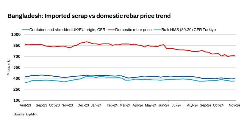 In Bangladesh, UK-origin shredded scrap prices rose following global cues despite sluggish demand, LC constraints, and construction delays impacting the market.