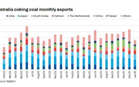 Indonesian indexed prices of high-CV (5800 GAR) coal were recorded at $93.30/t, down $1.03/t. Mid-CV (4200 GAR) prices decreased by $0.55/t to $51.29/t, and low-CV (3400 GAR) was recorded at $31.57/t, a fall of $0.36/t. All prices are on FOB basis.