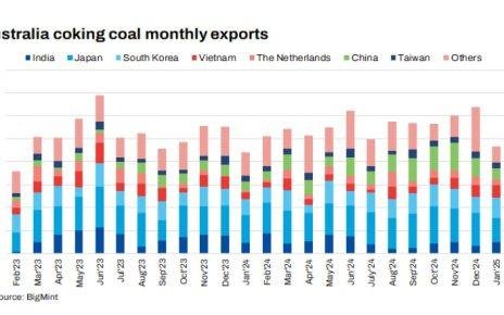 South African thermal coal exports experienced a significant decline in February 2025, totalling 4.50 million tonnes (mnt), a 24% drop compared to 5.94 mnt in January. This marks a 13% year-on-year (y-o-y) decrease from 5.16 mnt in February 2024. Monthly export volumes have fallen to the lowest since July’24, as per data maintained with BigMint. For the first two months of the calendar year, total exports reached 63.26 mnt.
