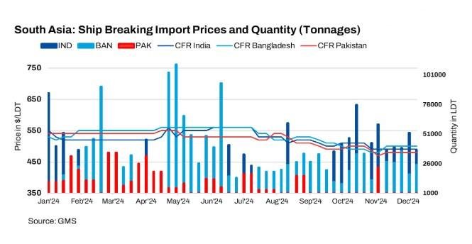 Overall, in 2024, despite a weaker performance, India has managed to acquire a broader range of ships, outperforming Bangladesh. Market stability is expected to continue, supported by steady inflation, the Reserve Bank of India’s unchanged repo rate, and rising foreign direct investments. These factors will benefit Alang’s recyclers as they prepare for a stronger 2025.